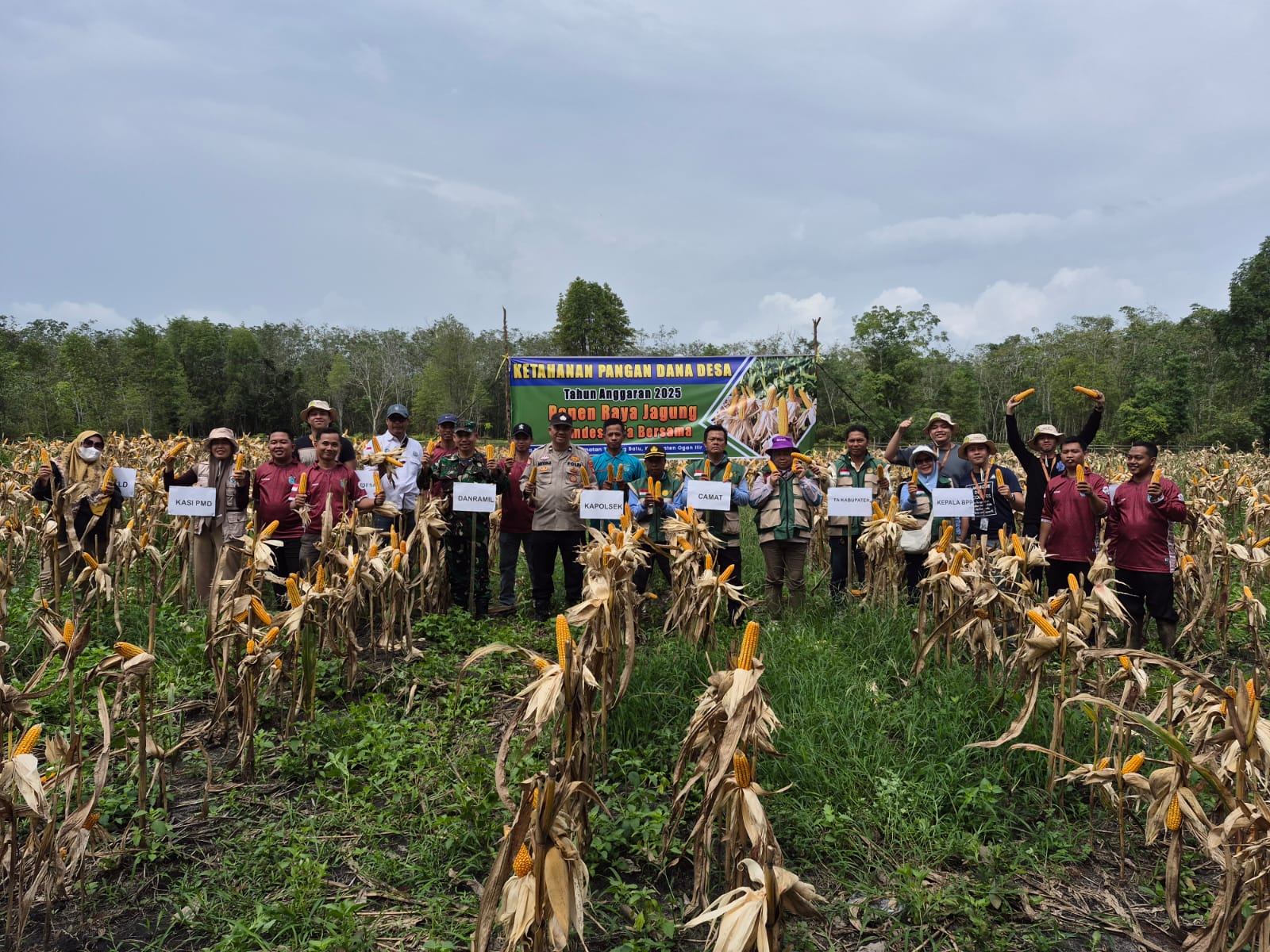 Senuro timur Kecamatan tanjung batu Kabupaten Ogan Ilir, dengan rangkaian / rincian tahapan, Pemanenan dilaksanakan pada rabu 14 januari 2026, dengan Luas lahan jagung 1 Hektar serta hasil panen jagung di perkirakan lebih kurang 5 ton